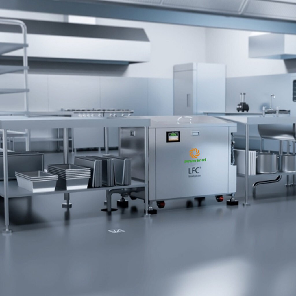 Convert organic food waste into safe grey water on-site with the Power Knot LFC biodigester. This fully enclosed, aerobic digester operates continuously eliminating hauling, reducing waste volume by up to 90%, and delivering significant cost and environmental benefits. Features include stainless construction, touchscreen controls, remote diagnostics, and cloud-based monitoring.